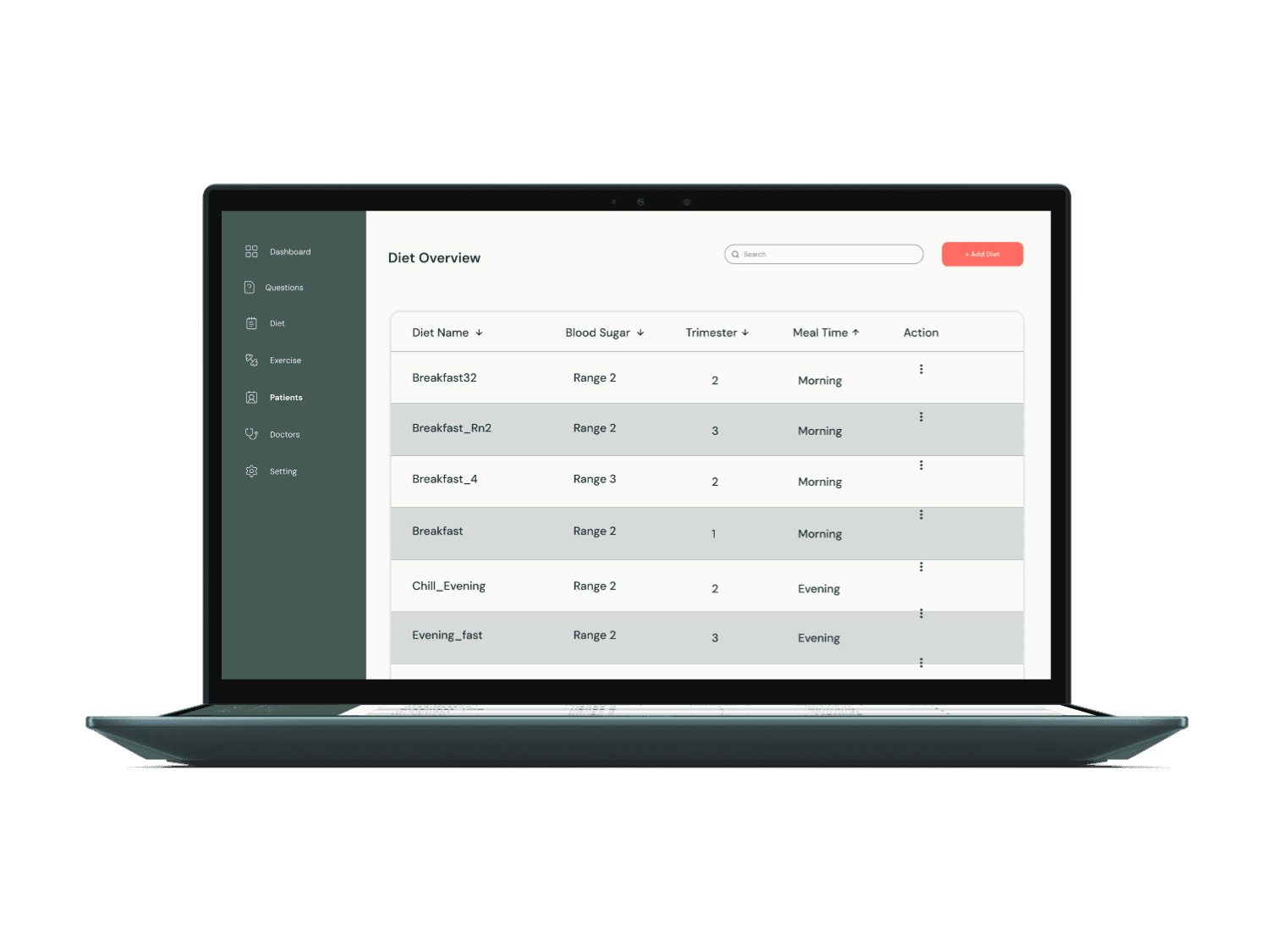 ✔ Doctors can create and customize diet plans based on patients' nutritional needs.