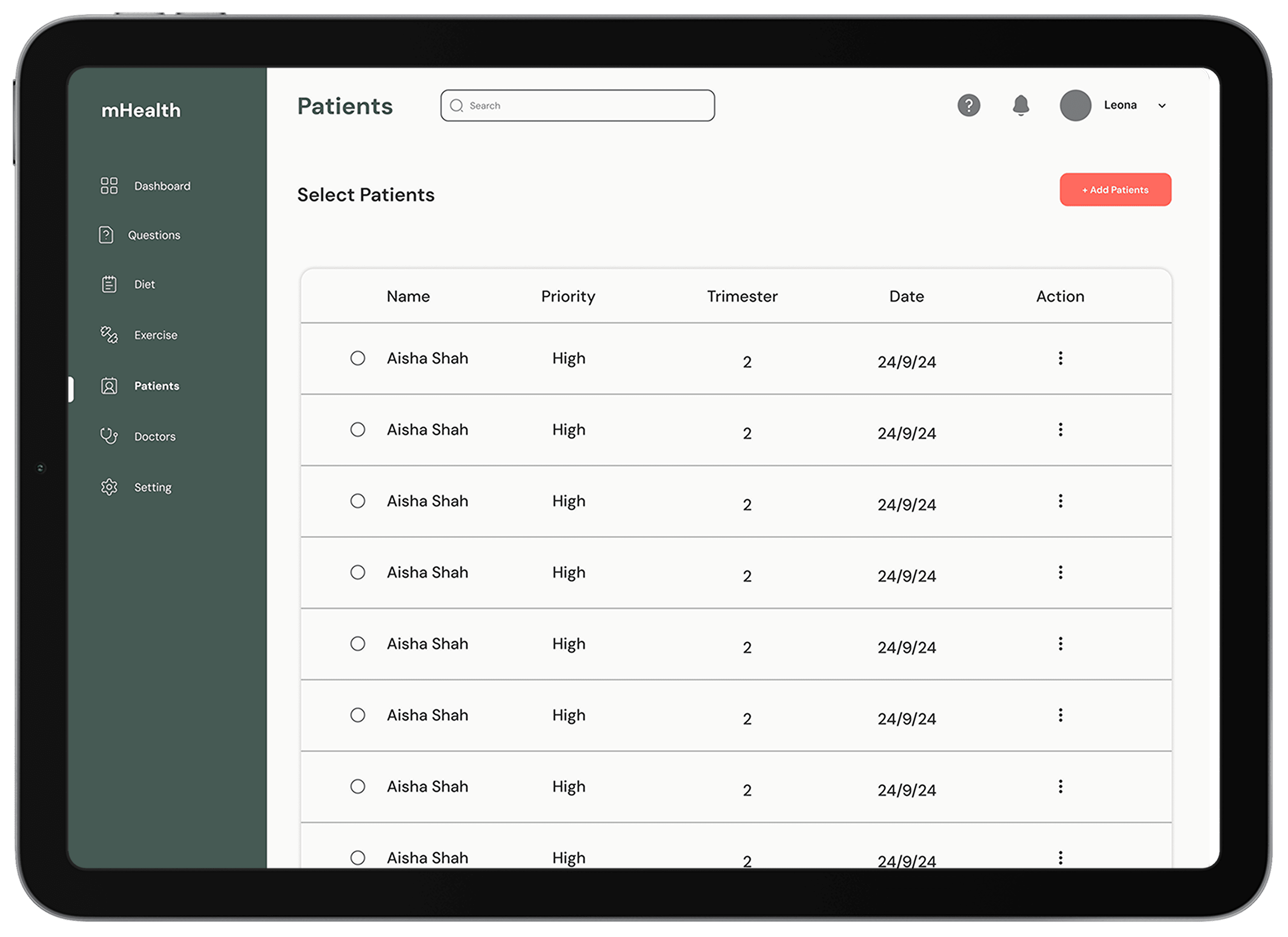 ✔ Doctors can efficiently add new patients by entering essential details.